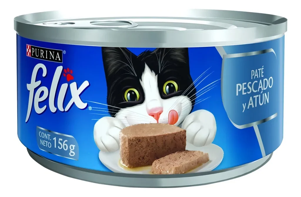 Felix Lata Paté Pescado y Atún es una deliciosa combinación de sabores que hará que tu gato se relama de gusto.