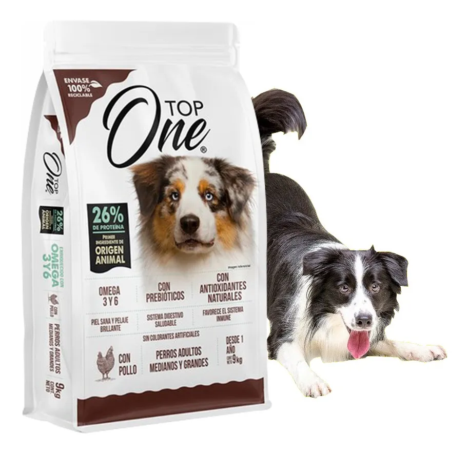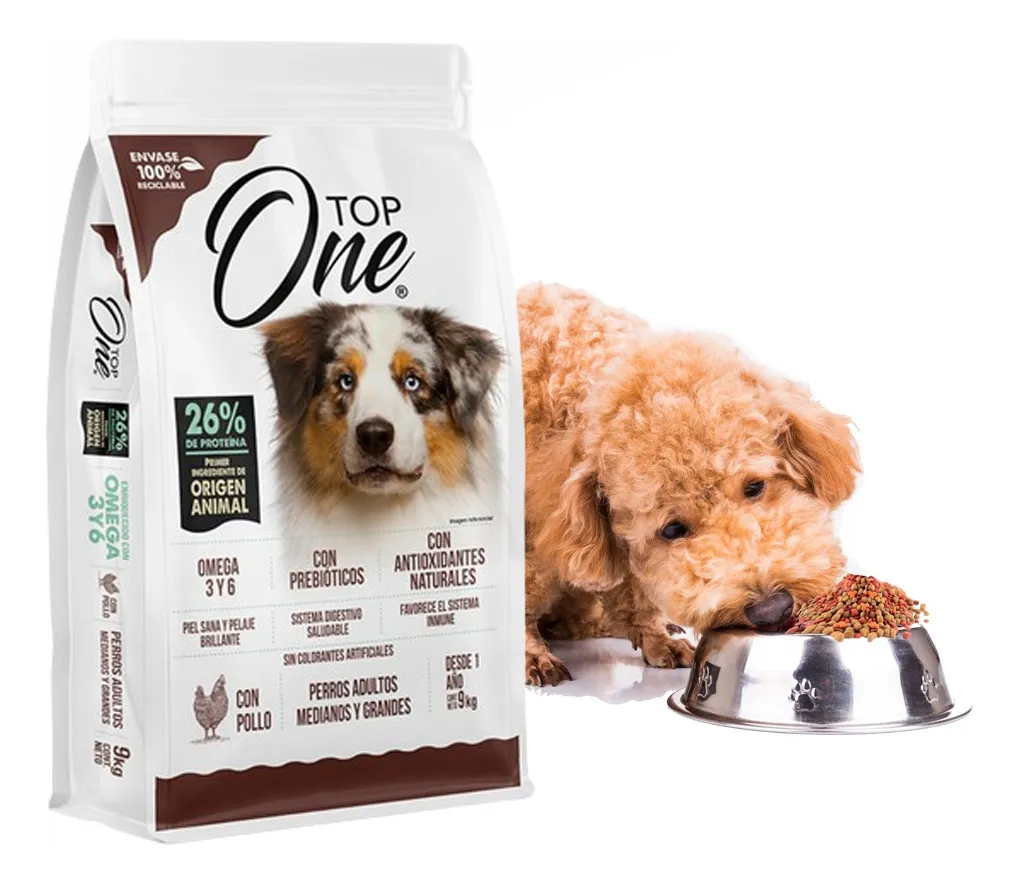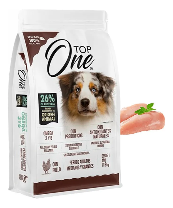 El alimento seco para perros Top One es la opción ideal para mantener a tu mascota saludable y feliz. Con un delicioso sabor a pollo, este producto es apto para perros de todas las edades y se presenta en un formato de 18 kg, perfecto para razas medianas y grandes. Cada croqueta está formulada para aportar un 26% de proteína bruta, esencial para el desarrollo y la energía de tu compañero peludo. Los ingredientes seleccionados, como pollo, omega 3, omega 6 y prebióticos, aseguran una dieta equilibrada que promueve tanto la salud óptima como un pelaje radiante. La combinación de nutrientes ayuda a fortalecer el sistema inmunológico de tu perro y favorece una adecuada digestión.