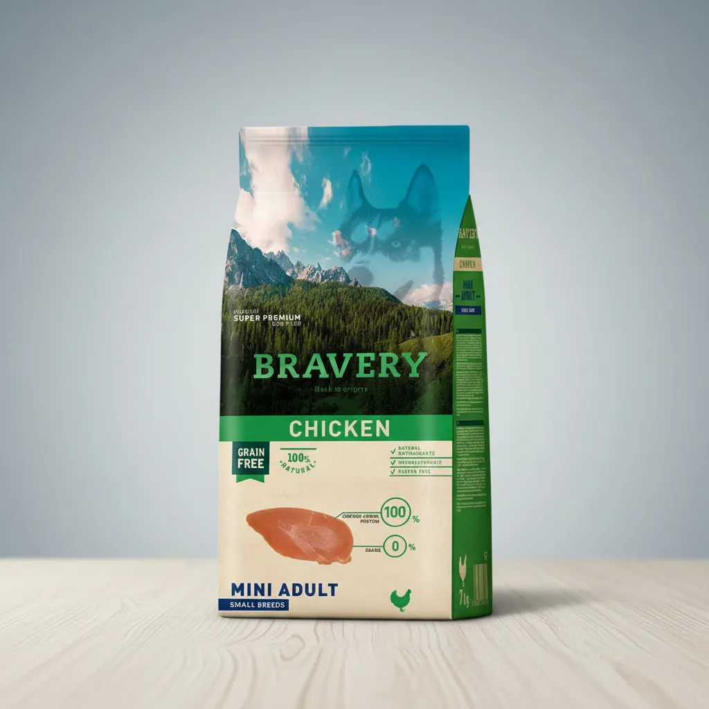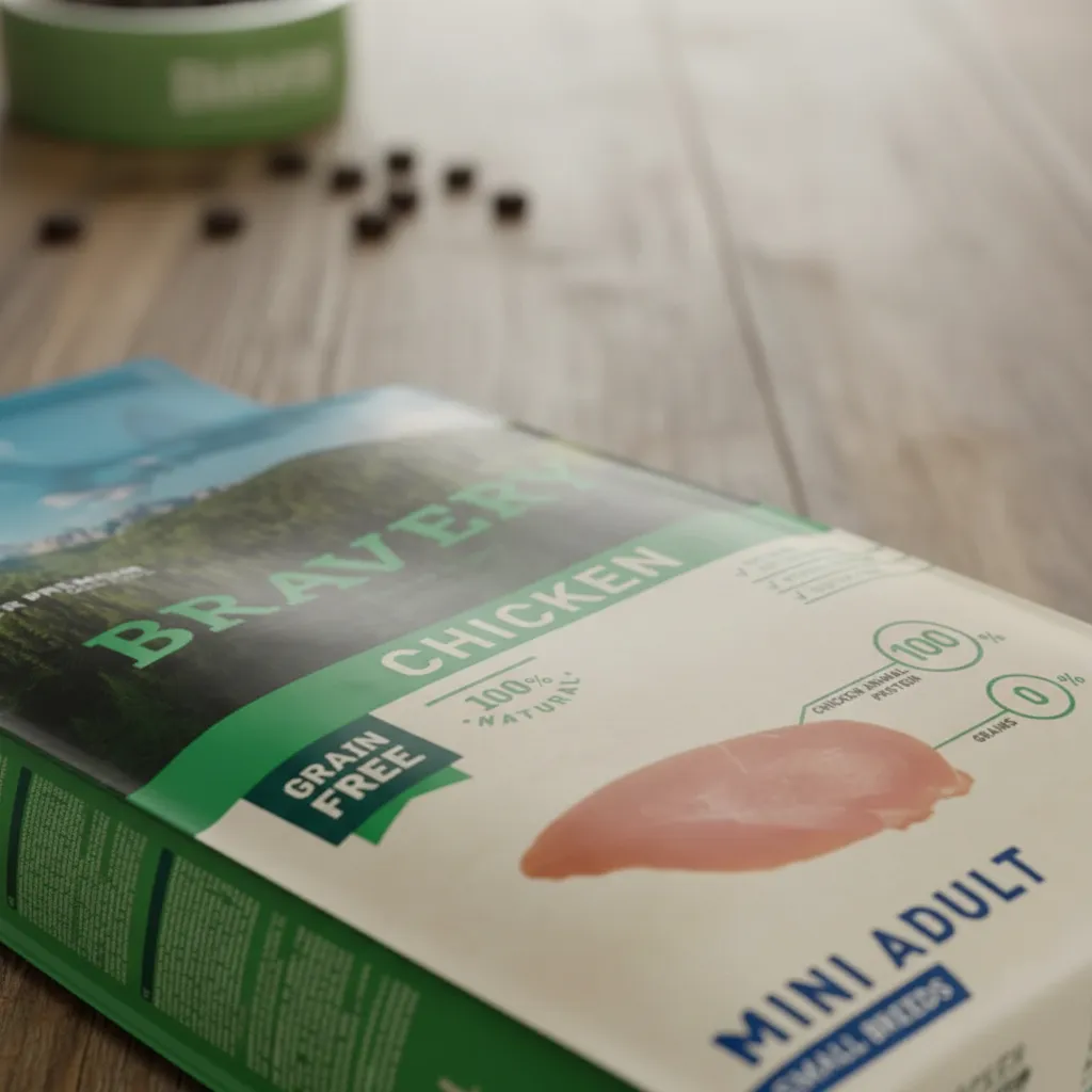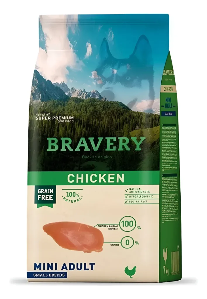 Bravery Pollo para adulto raza pequeña, es un alimento libre de granos, monoproteíco, con pollo como primer ingrediente, con antioxidantes naturales, hipoalergénico y con productos 100% naturales. Bravery es una gama de alimentos secos para perros de prestigio. Se trata de un producto libre de granos, mono proteico, con carne siempre como primer ingrediente, solo con antioxidantes, hipoalergénico y con productos 100% naturales. Contiene carne de elevado contenido en proteínas de alto valor biológico, de alta digestibilidad y palatabilidad. Además, es una carne baja en calorías y rica en ácidos grasos insaturados omega-6 y vitaminas (niacina y ácido fólico).
